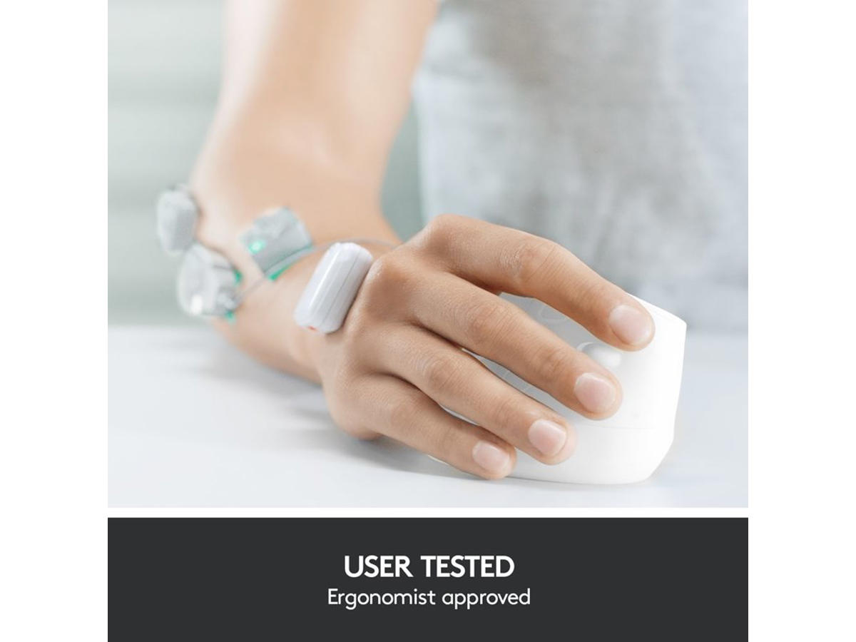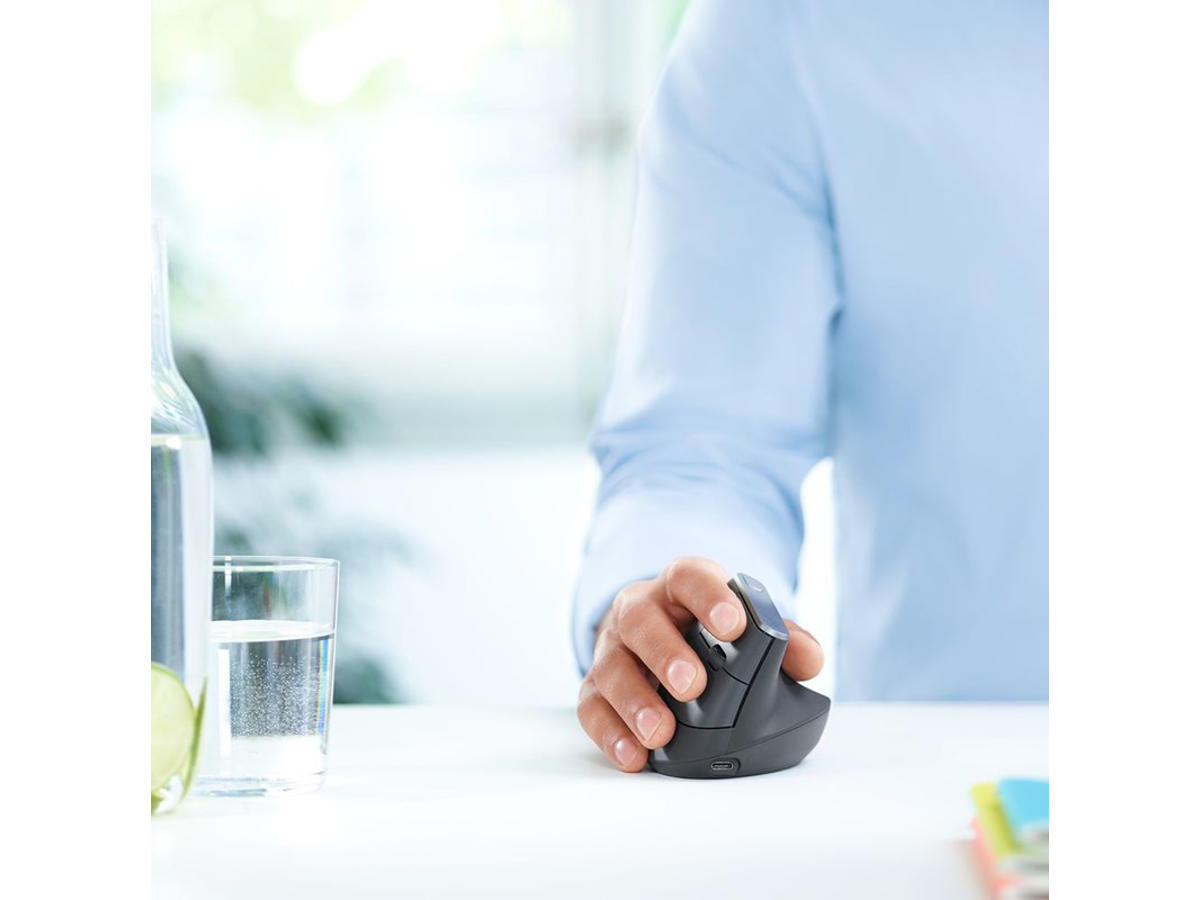 MX Verticals naturlige håndtryksposition reducerer muskelspændingen med 10 procent, sammenlignet med en traditionel ikke-lodret mus, og fremmer en mere ergonomisk kropsholdning.