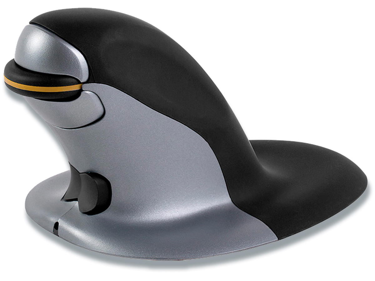 Penguin Mouse er et højt værdsat arbejdsredskab fra Fellowes med høj præcision og 'easy-glide'. Det lodrette design giver en forbedret ergonomisk arbejdsstilling og forhindrer belastning af håndleddet. Let at skifte mellem højre/venstre håndbetjening og fås i tre størrelser for maksimalt greb. Produktinfo: 3 størrelser (S, M & L). Vælg mellem trådløs eller kablet. Højre- og venstrehåndede. 400, 600, 800 eller 1200 dpi. BioCote® Anti-bakteriel beskyttelse holder produktet rent. Kompatibel med Linux, Windows 2000, XP, Vista, 7, 8, 10 og versioner af disse, MAC OS X 10.6 og nyere.