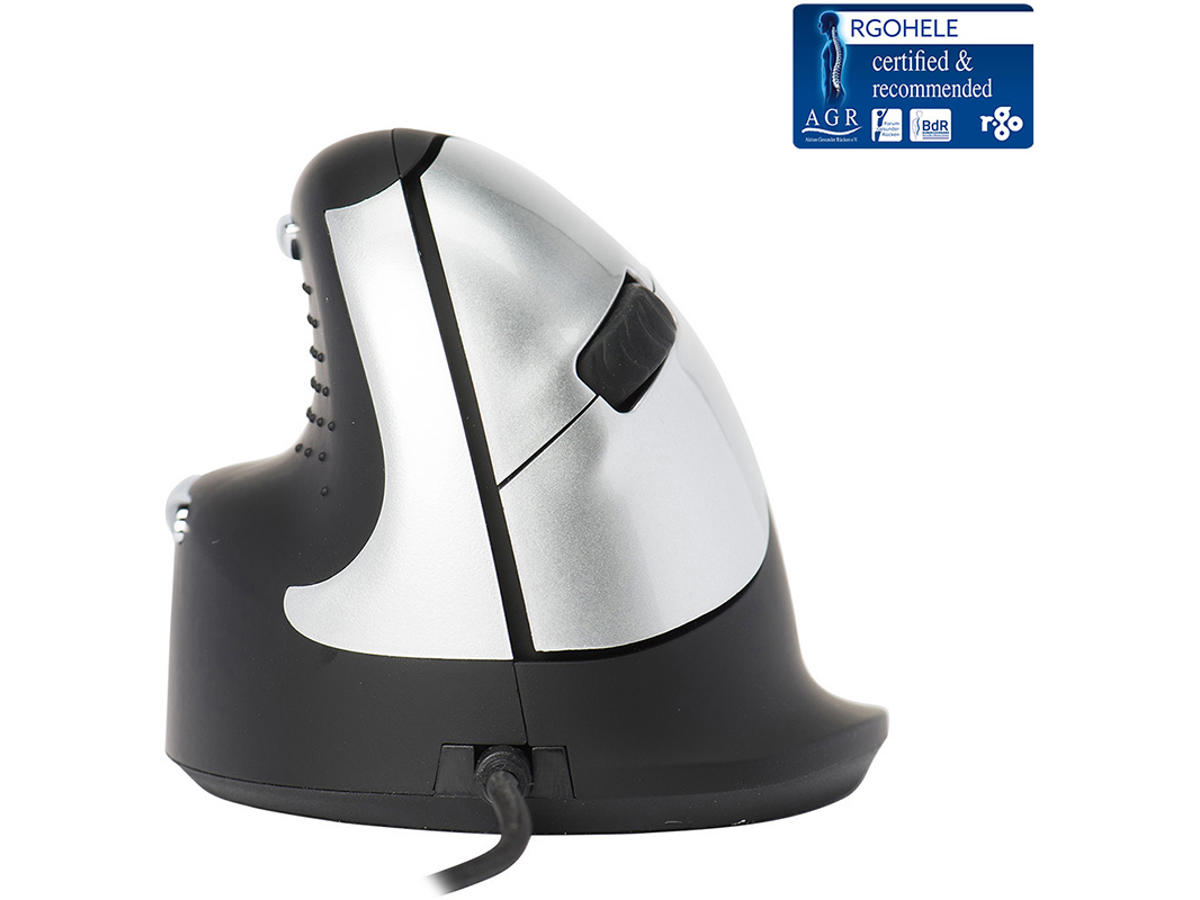 HE-musen har et lodret greb, som giver en naturlig og afslappet holdning i hånd og håndled. Du udfører bevægelserne fra underarmen i stedet for håndleddet, og derved kan du forebygge overbelastningsskader (RSI). Musen passer godt til hånden og er med til at understøtte dit håndled og dine fingre.