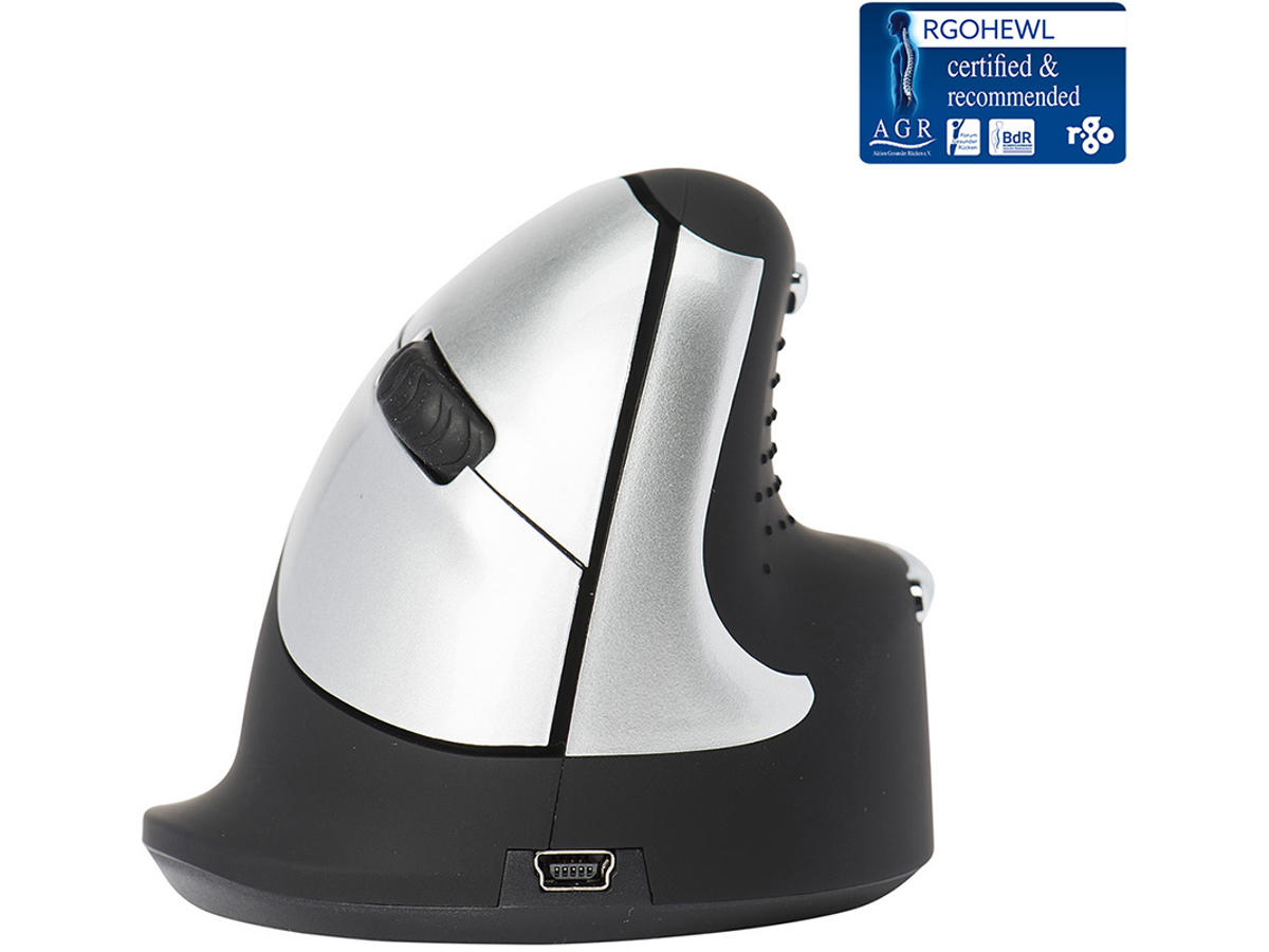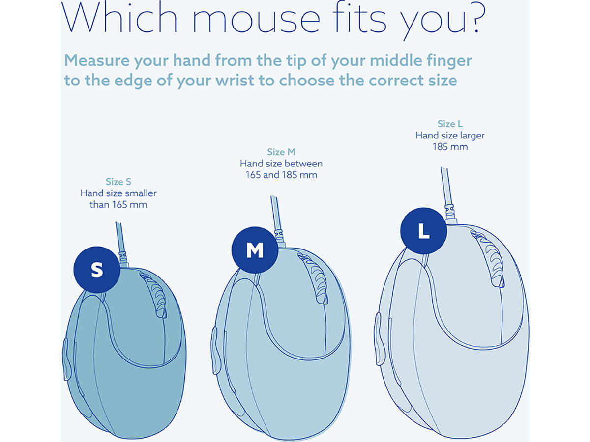 HE-musen har et lodret greb, som giver en naturlig og afslappet holdning i hånd og håndled. Du udfører bevægelserne fra underarmen i stedet for håndleddet, og derved kan du forebygge overbelastningsskader (RSI). Musen passer godt til hånden og er med til at understøtte dit håndled og dine fingre.