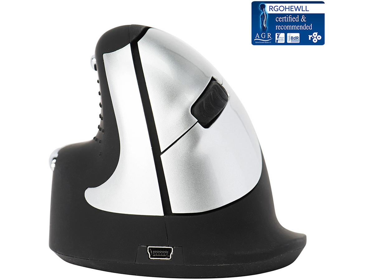 HE-musen har et lodret greb, som giver en naturlig og afslappet holdning i hånd og håndled. Du udfører bevægelserne fra underarmen i stedet for håndleddet, og derved kan du forebygge overbelastningsskader (RSI). Musen passer godt til hånden og er med til at understøtte dit håndled og dine fingre.