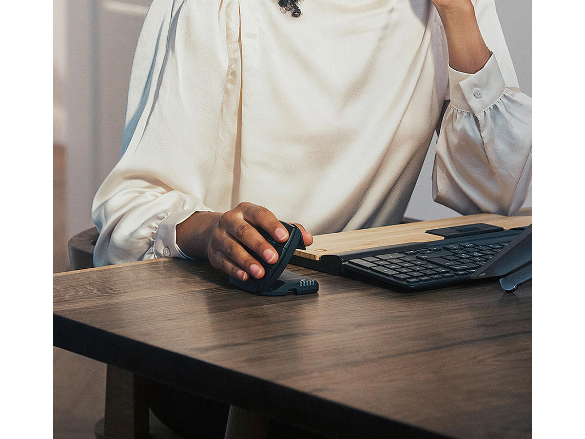 Den justerbare tommelfingerstøtte kan justeres i alle retninger, ud/ind, op/ned, frem/tilbage, hældning og rotation. Det mindsker gribesmerter og tryk på tommelfingerens rodled, hvorved belastningsskader reduceres, og du kan holde afslappet om musen – uanset hvilken størrelse eller form din hånd har.
