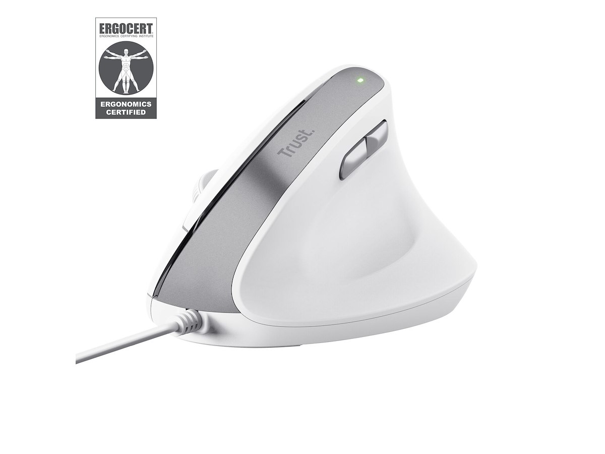 Trust Bayo II. Formfaktor: Højre hånd, Vertikal design. Bevægelsesdetekteringsteknologi: Optisk, Enhedsgrænseflade: USB Type-A, Bevægelsesopløsning: 2400 dpi, Knapper type: Trykte knapper, Antal knapper: 6, Rulle type: Hjul. Strømkilde: Kabel. Produktfarve: Hvid