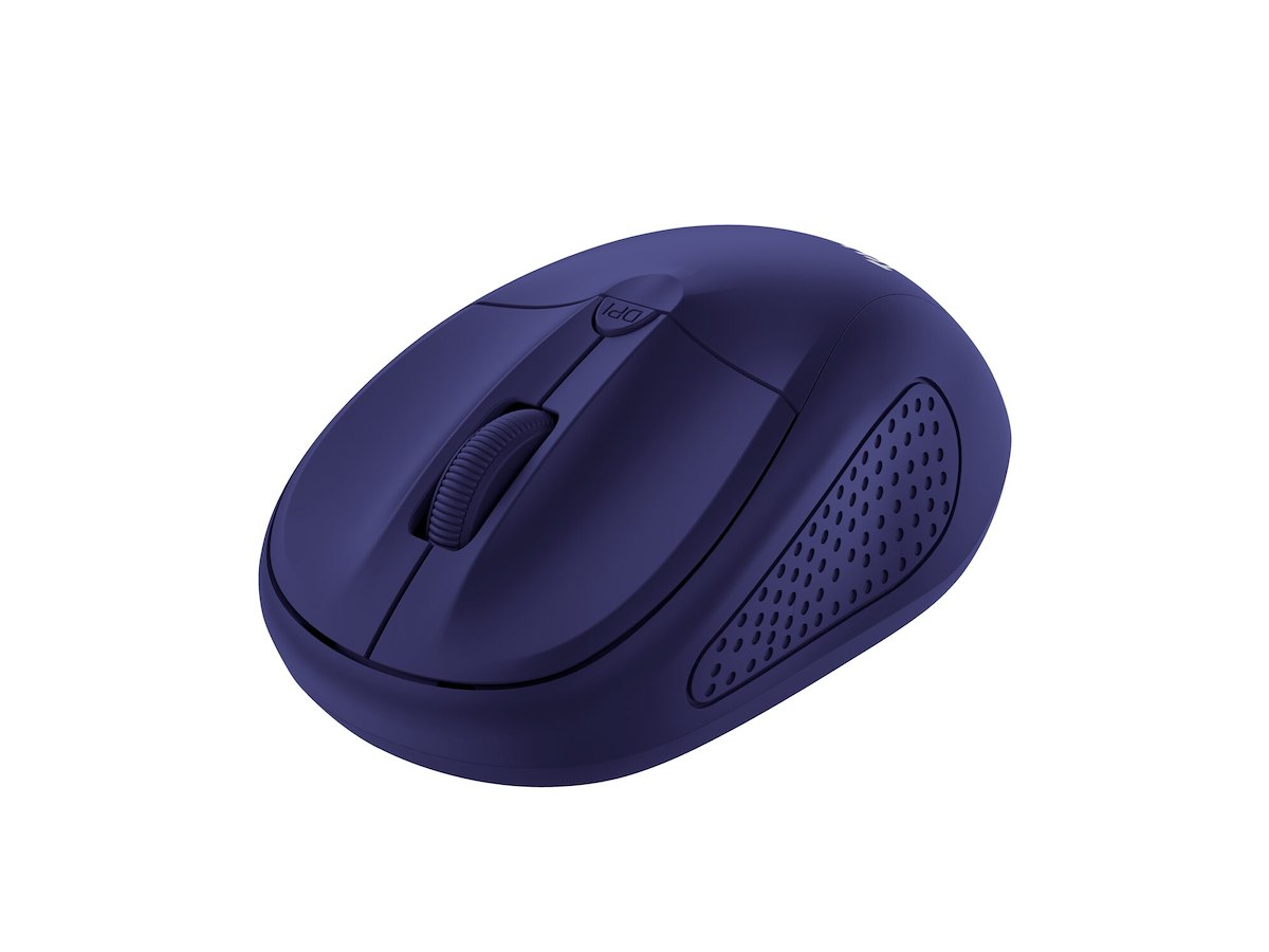 Trust Primo. Formfaktor: Ambidextrous. Bevægelsesdetekteringsteknologi: Optisk, Enhedsgrænseflade: RF trådløst, Bevægelsesopløsning: 1600 dpi, Knapper type: Trykte knapper, Antal knapper: 4, Rulle type: Hjul. Strømkilde: Batterier. Produktfarve: Blå
