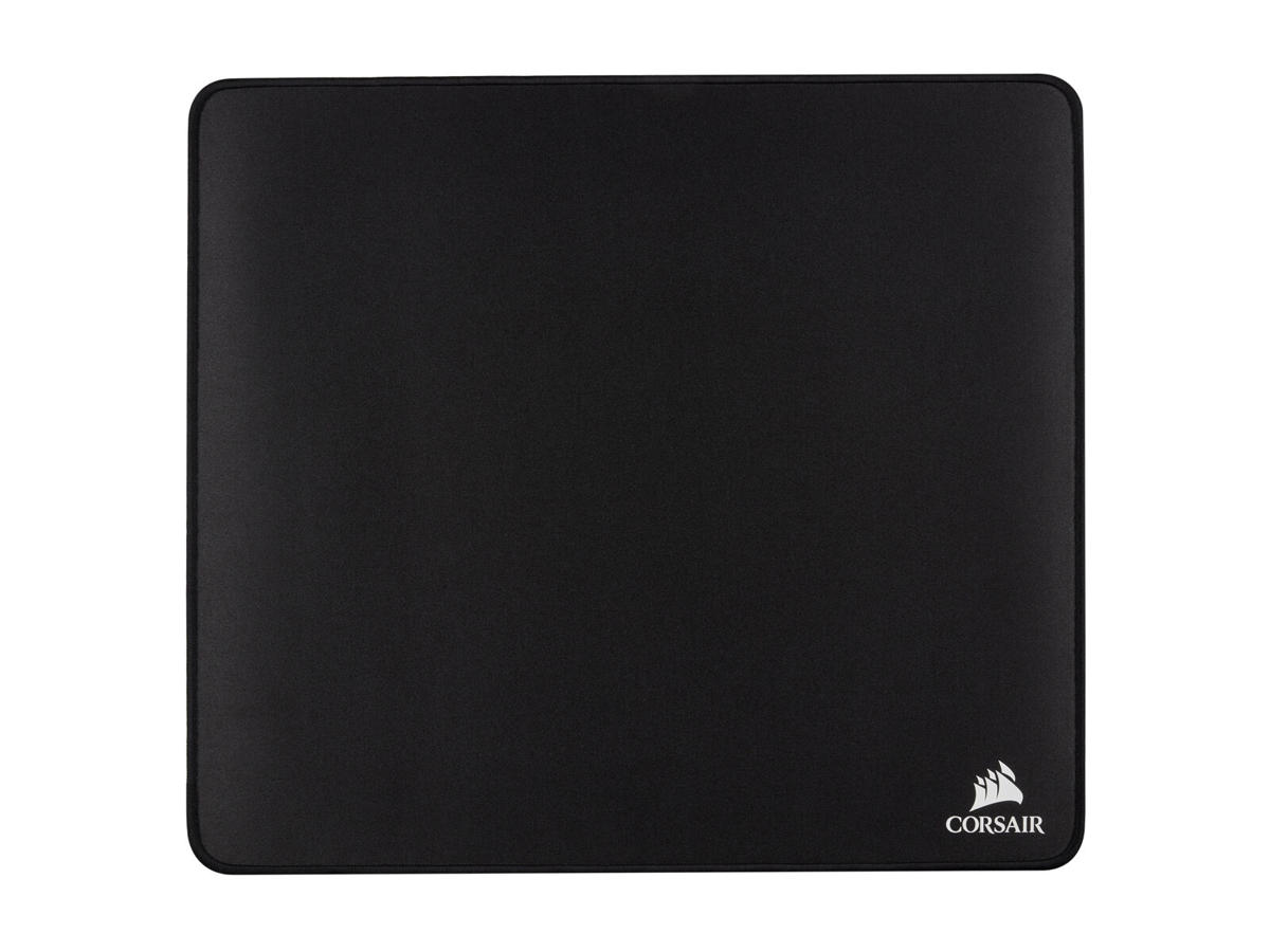 Corsair MM350 Champion. Bredde: 450 mm, Dybde: 400 mm. Produktfarve: Sort, Overfladefarvning: Monokromatisk, Materiale: Gummi, Vævet stof, Skridsikker bund, Gaming musemåtte