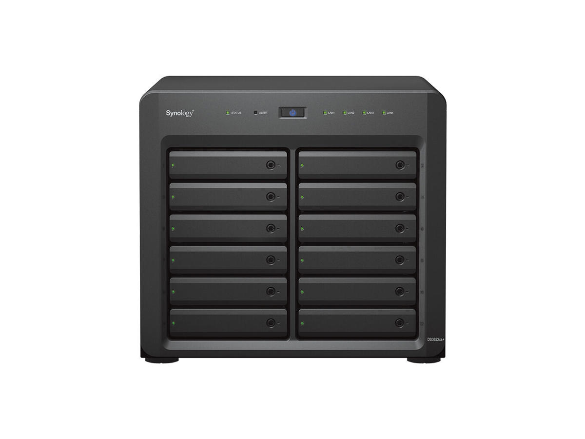 The 12-bay Synology DS3622xs+ is a powerhouse NAS capable of fitting into small and medium business environments with intensive and multi-user workloads. Its high capacity, scalability, and processing power make it ideal for VM and container storage, for lightning-fast file sharing, and as a network video recorder for large surveillance deployments. It comes with powerful storage management, file syncing, surveillance, and backup software, and is suitable for editing high-quality video.