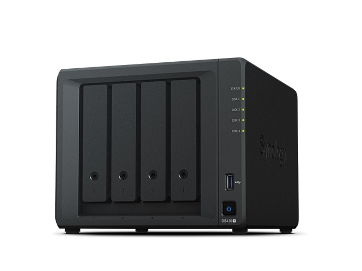 Synology DS420+ er designet til it-entusiaster og hjemmebrugere. DS420+ er udstyret med en 2-core-processor og indbygget M.2 NVMe 2280 SSD-stik til cacheacceleration og er velegnet til datadeling, videostreaming og fotoindeksering.