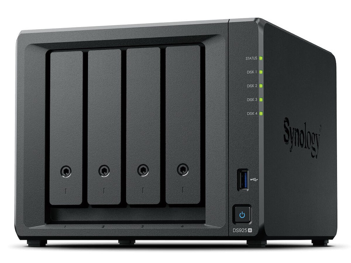 Synology DiskStation DS925+. Type: NAS, Enhedsklasse: Hjem & hjemmekontor. Processorserie: Ryzen Embedded, Processormodel: V1500B, Processorfrekvens: 2,2 GHz. Intern hukommelse: 4 GB, Intern hukommelsestype: DDR4. Total installeret opbevaringskapacitet: 0 TB