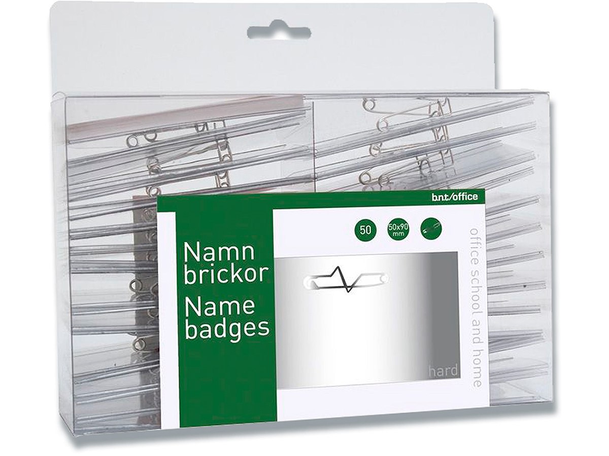 Navneskilt, Med sikkerhedsnål og indstik, 50x90 mm, 1 stk, BNT Office