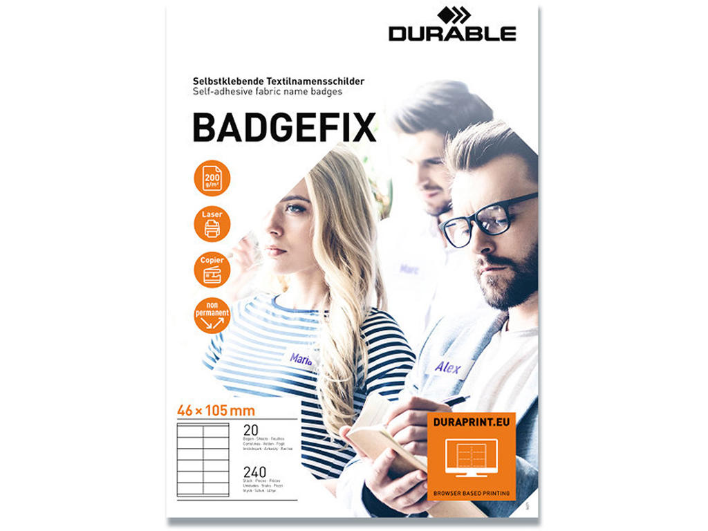 • Indeholder 20 ark som giver 240 navneskilte klistermærker i størrelse 46 x 105 mm