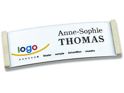 Navneskilt, Med sikkerhedsnål og indstik, 40x75 mm, 10 stk, Durable