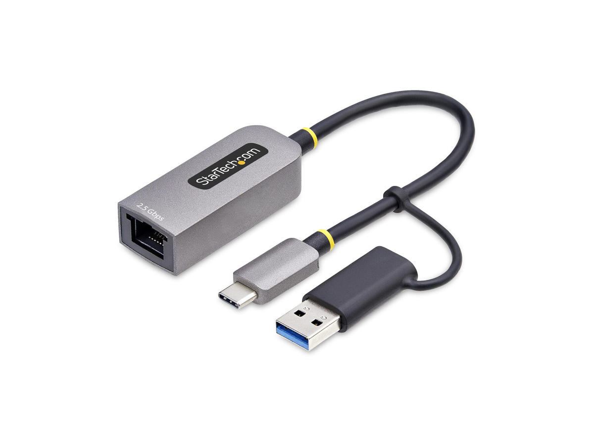 Add 2.5GbE network access to a laptop, tablet, or iPhone using an available USB Type-C or Type-A port. This USB 3.0 Type-C to Gigabit network adapter doubles your network performance on existing Cat5e cables, so there is no need to change or add to existing cabling infrastructure. This versatile adapter features a built-in 6in (15cm) USB cable and is bus-powered, drawing its power directly from the computer's USB port, reducing clutter and simplifying setup by eliminating the need for an external power adapter.