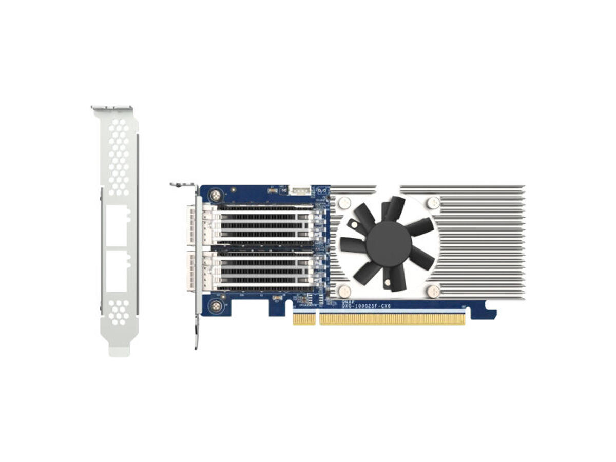 QNAP QXG-100G2SF-CX6. Intern. Forbindelsesteknologi: Ledningsført, Værtsgrænseflade: PCI Express, Grænseflade: Fiber. Maksimal dataoverførselshastighed: 100000 Mbit/s