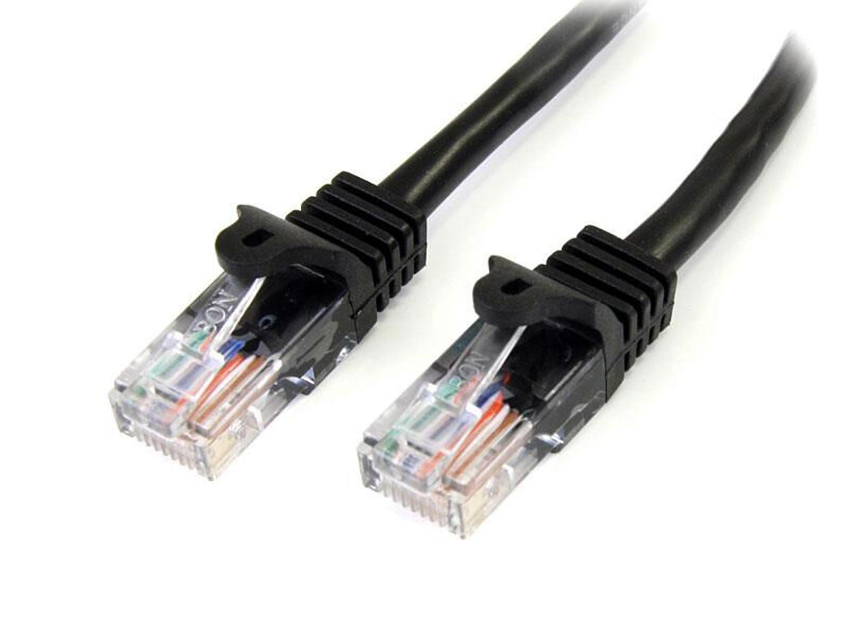 StarTech.com 45PAT5MBK. Kabellængde: 5 m, Standard for kabler: Cat5e, Kabelafskærmning: U/UTP (UTP), Stik 1: RJ-45, Stik 2: RJ-45, Dataoverførselshastighed: 100 Mbit/s, Produktfarve: Sort