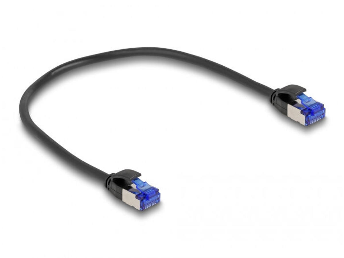 DeLOCK 80225. Kabellængde: 0,25 m, Standard for kabler: Cat6a, Kabelafskærmning: S/FTP (S-STP), Stik 1: RJ-45, Stik 2: RJ-45, Produktfarve: Sort