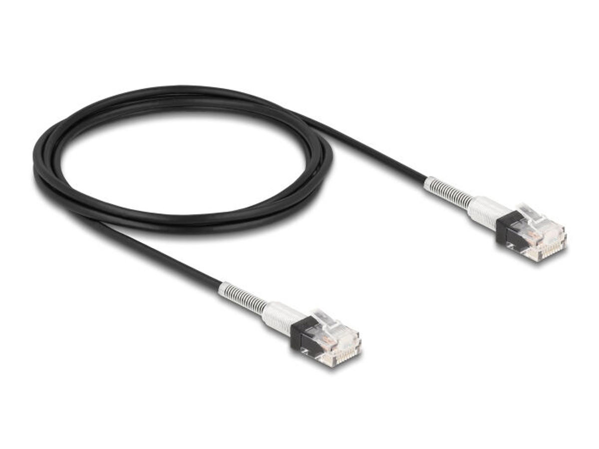 DeLOCK 80390. Kabellængde: 2 m, Standard for kabler: Cat6a, Kabelafskærmning: U/UTP (UTP), Stik 1: RJ-45, Stik 2: RJ-45, Stikforbindelse kontakter plettering: Guld, Dataoverførselshastighed: 10000 Mbit/s, Produktfarve: Sort