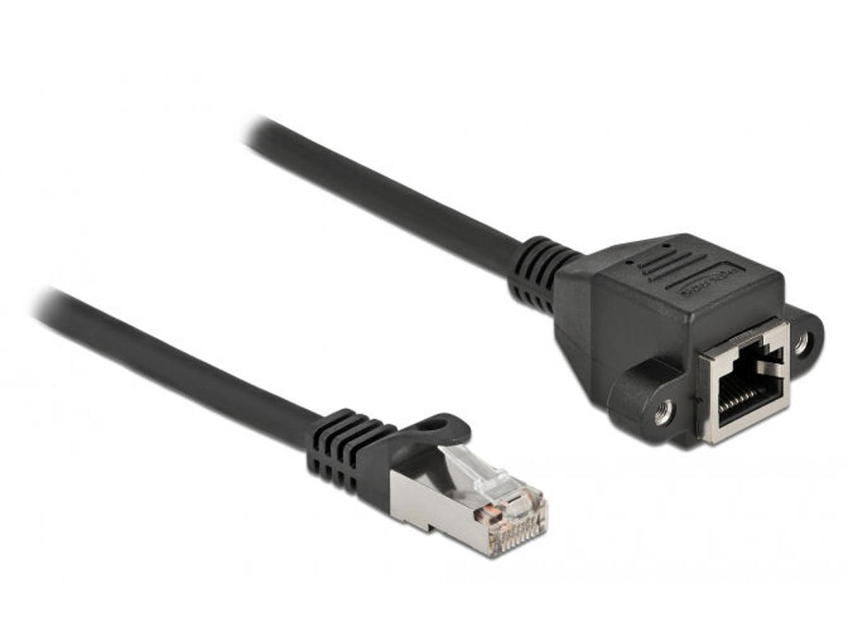 DeLOCK 87005. Kabellængde: 5 m, Standard for kabler: Cat6a, Kabelafskærmning: S/FTP (S-STP), Stik 1: RJ-45, Stik 2: RJ-45, Produktfarve: Sort