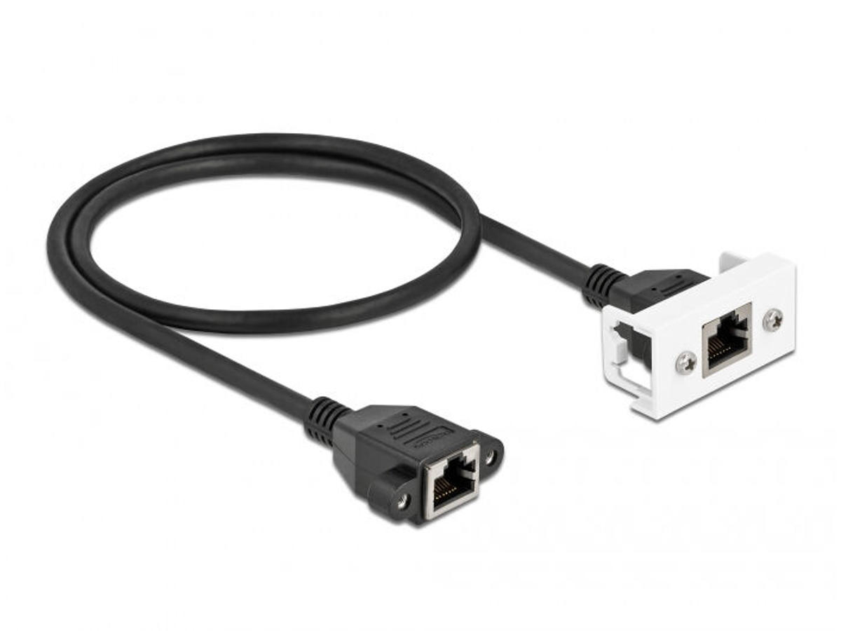 • This network cable by Delock can be used to extend and connect various devices. The screwable RJ45 jack can be attached to the Delock Easy 45 module. The simple snap-in mechanism ensures that the module is firmly in place and can be easily removed if necessary.