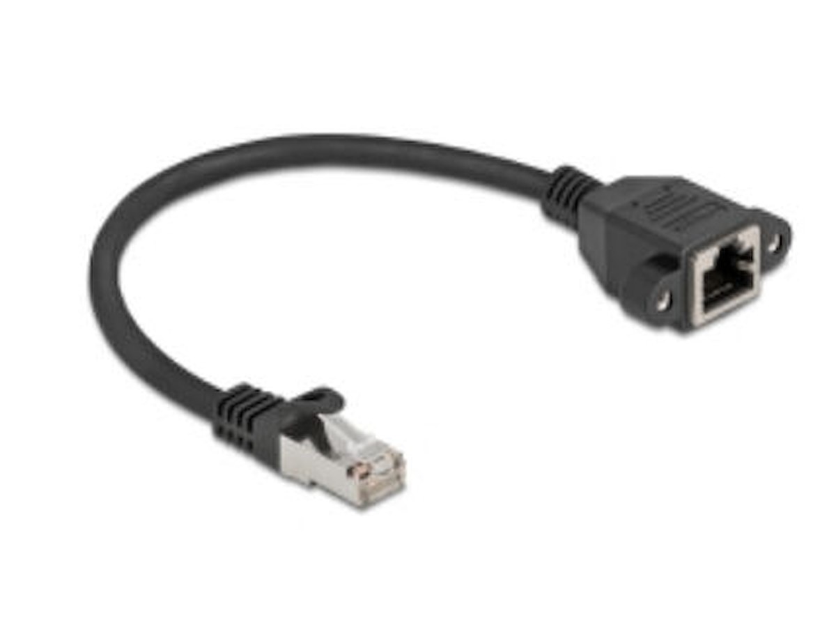 DeLOCK 90773. Kabellængde: 0,25 m, Standard for kabler: Cat6a, Kabelafskærmning: S/FTP (S-STP), Stik 1: RJ-45, Stik 2: RJ-45, Produktfarve: Sort