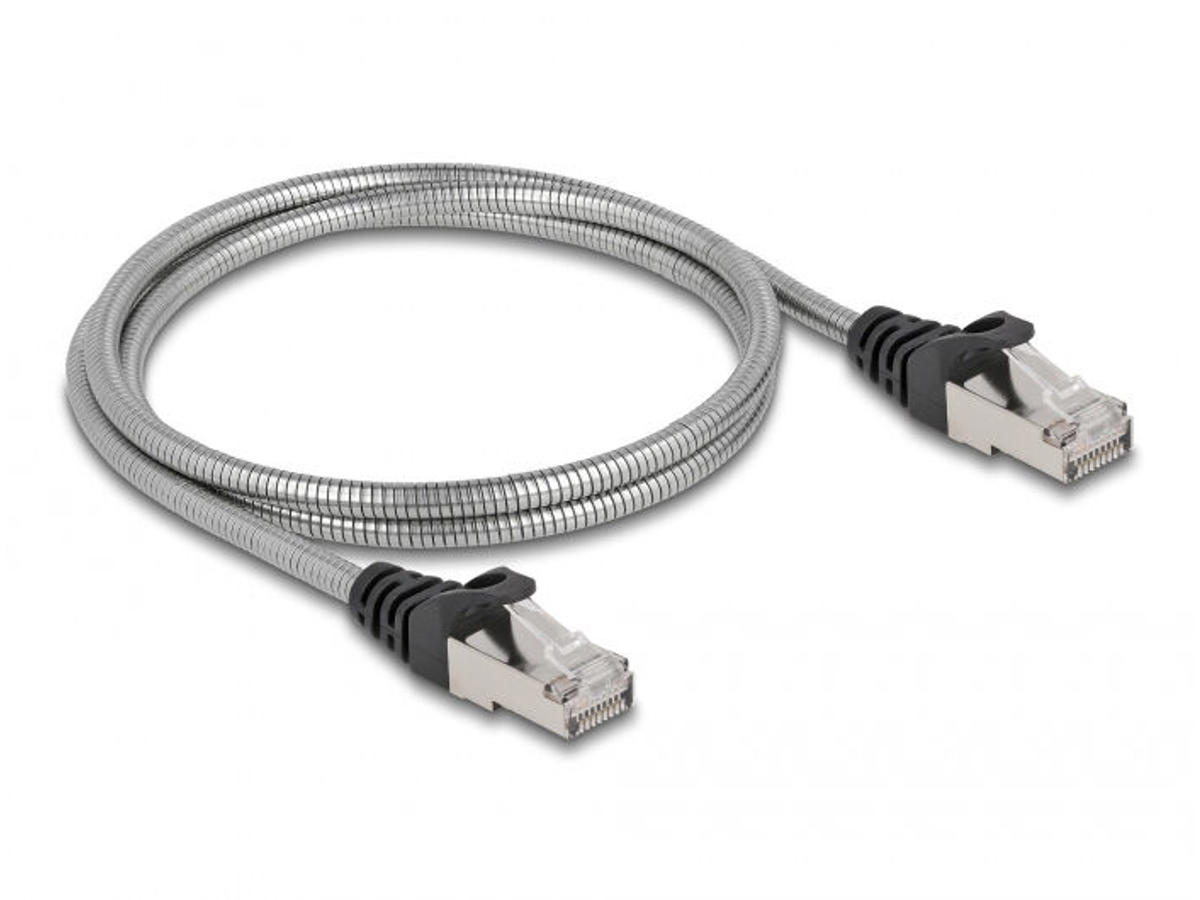 DeLOCK 80108. Kabellængde: 1 m, Standard for kabler: Cat6a, Kabelafskærmning: U/FTP (STP), Stik 1: RJ-45, Stik 2: RJ-45, Produktfarve: Sølv