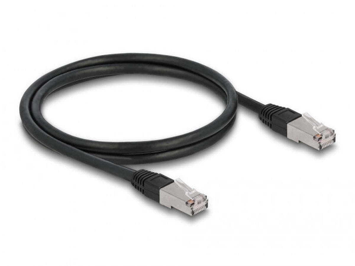DeLOCK 80126. Kabellængde: 1 m, Standard for kabler: Cat6a, Kabelafskærmning: S/FTP (S-STP), Stik 1: RJ-45, Stik 2: RJ-45, Produktfarve: Sort
