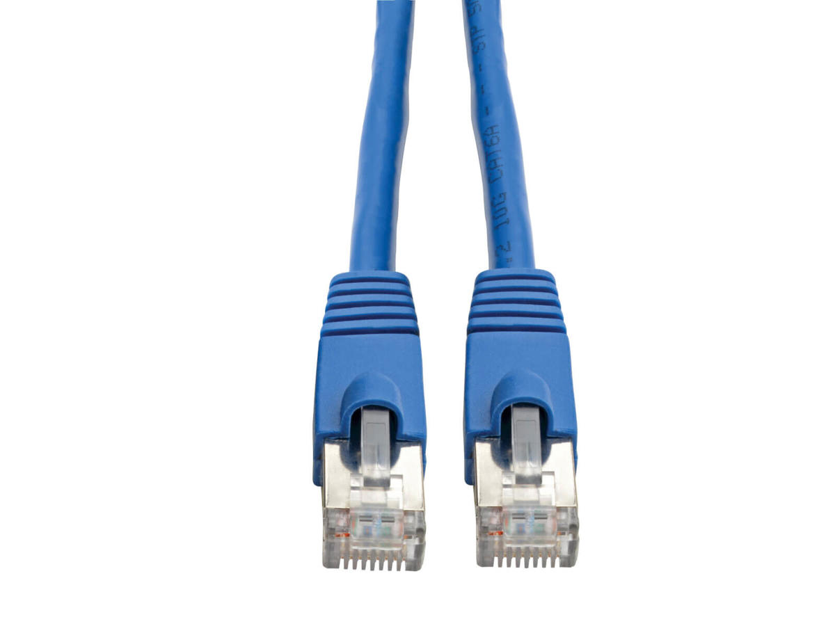 The N262-020-BL Cat6a 10G-Certified Snagless Shielded STP Network Patch Cable (RJ45 M/M) is recommended for transmitting 10 Gbps data, voice and video through high-speed 10G equipment, including network switches, modems, routers, adapters, hubs and patch panels. It also connects PoE devices, such as VoIP phones, security cameras and point-of-sale kiosks.