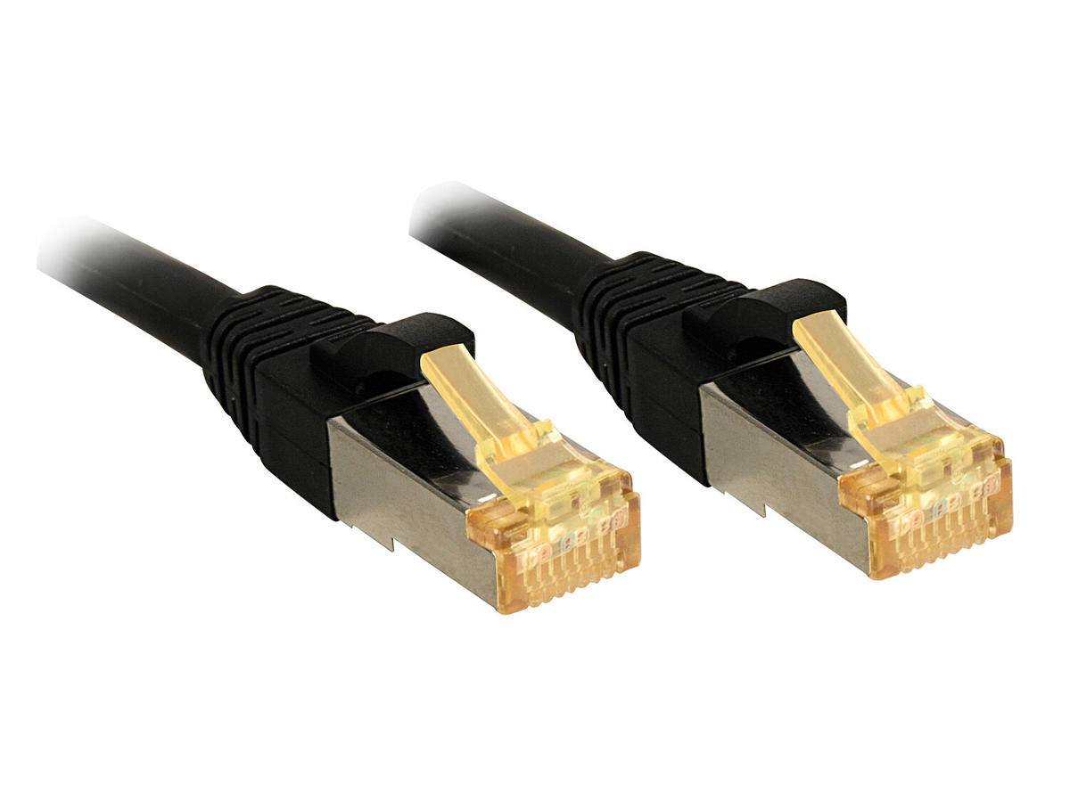 Cat.7 S/FTP LSZH network cable with Cat.6A connectors supports bandwidth up to 600MHz and features a snagless design with gold plated contacts for ethernet standards up to 10 GBase-T.