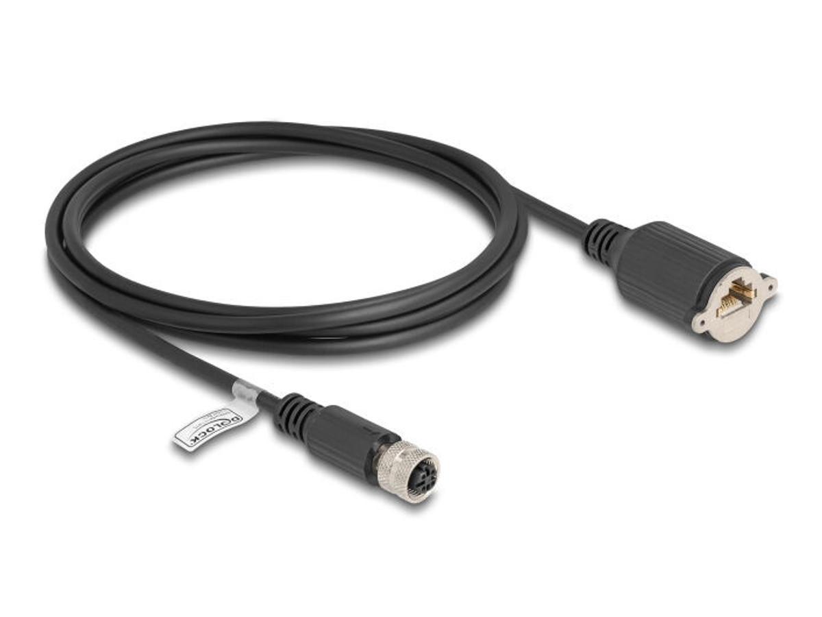 DeLOCK 80453. Kabellængde: 2 m, Standard for kabler: Cat5e, Kabelafskærmning: F/UTP (FTP), Stik 1: M12, Stik 2: RJ-45, Produktfarve: Sort