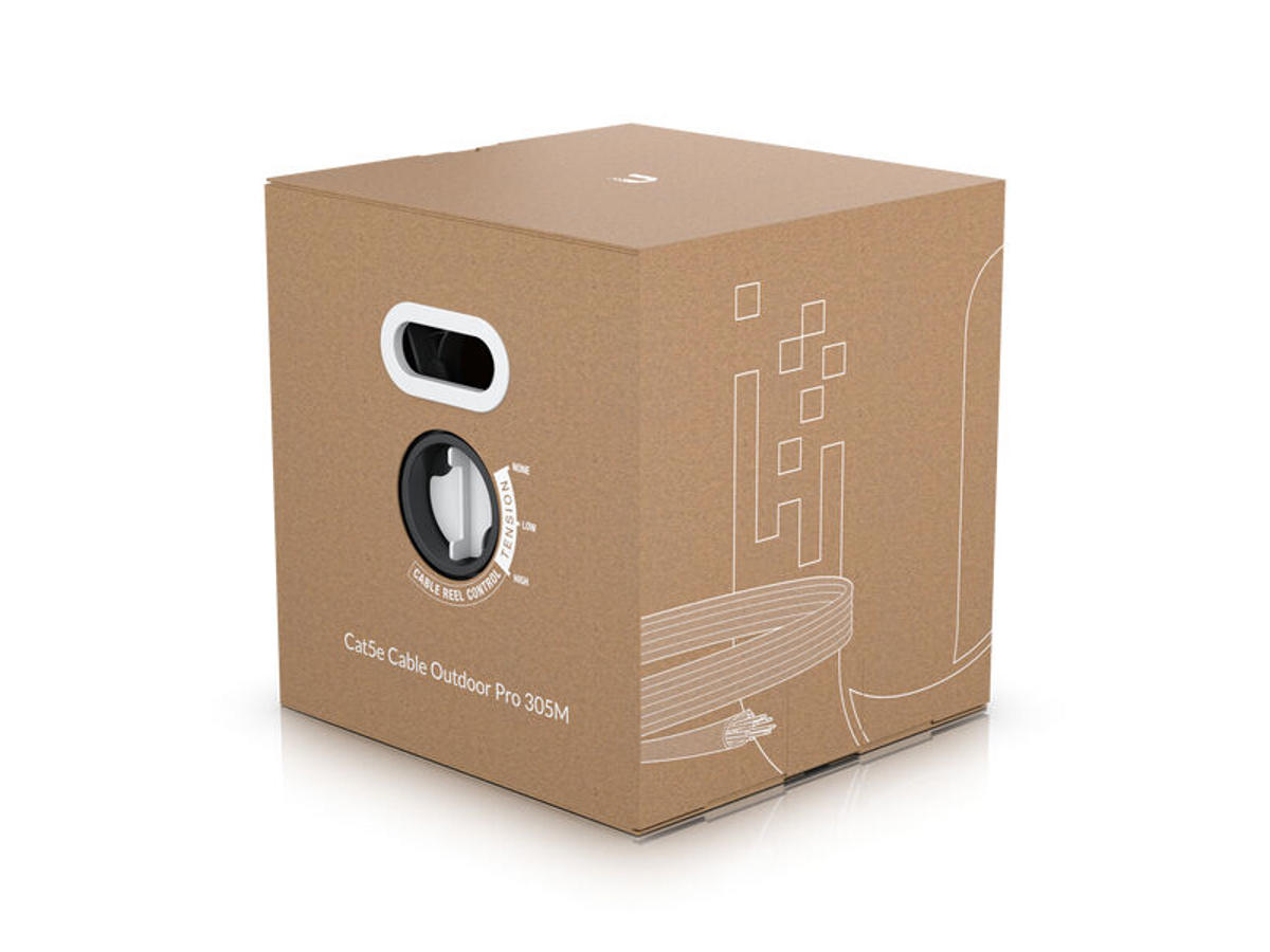 The UniFi Outdoor Cable is an all-weather Category 5e cable designed to protect Gigabit Ethernet links from harsh weather damage and electromagnetic interference with its highly insulating, white, weatherproof jacket and built-in ESD drain wire. This 1,000-foot (305 m) cable also features 24 AWG solid copper conductor pairings and internal foil shielding to optimize connection stability and performance.