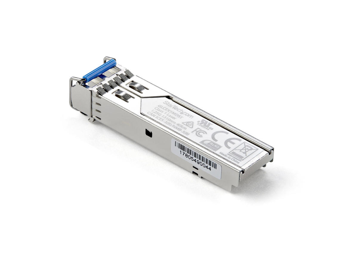 The GLCEXSMDST is a Cisco GLC-EX-SMD compatible fiber transceiver module that has been designed, programmed and tested to work with Cisco® brand switches and routers. It delivers dependable 1 GbE connectivity over fiber cable, for 1000BASE-EX compliant networks, with a maximum distance of up to 40 km (24.8 mi).