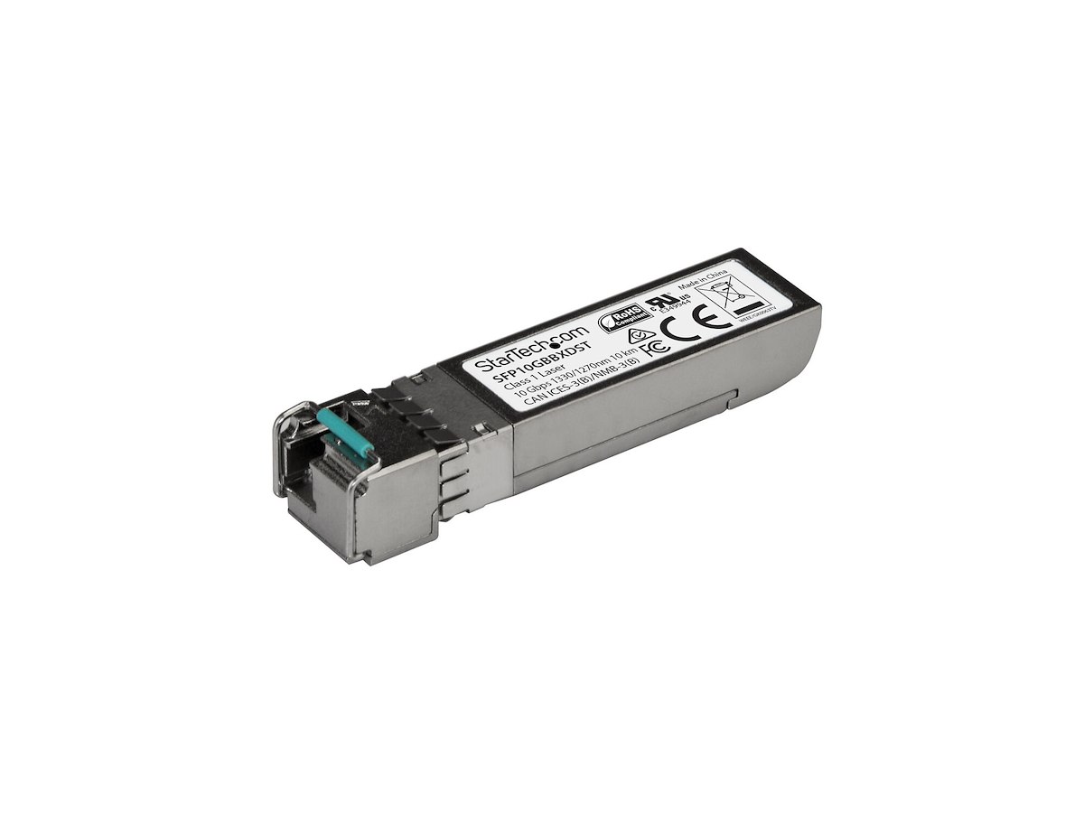 The SFP10GBBXDST is an MSA compliant downstream fiber SFP transceiver which pairs with StarTech.com's SFP10GBBXUST. They are designed, programmed and tested to work with 10GBASE-BX compatible MSA switches and routers. The SFP+ transceiver module supports a maximum distance of up to 10 km (6.2 mi) and delivers dependable 10 GbE connectivity over fiber cabling.