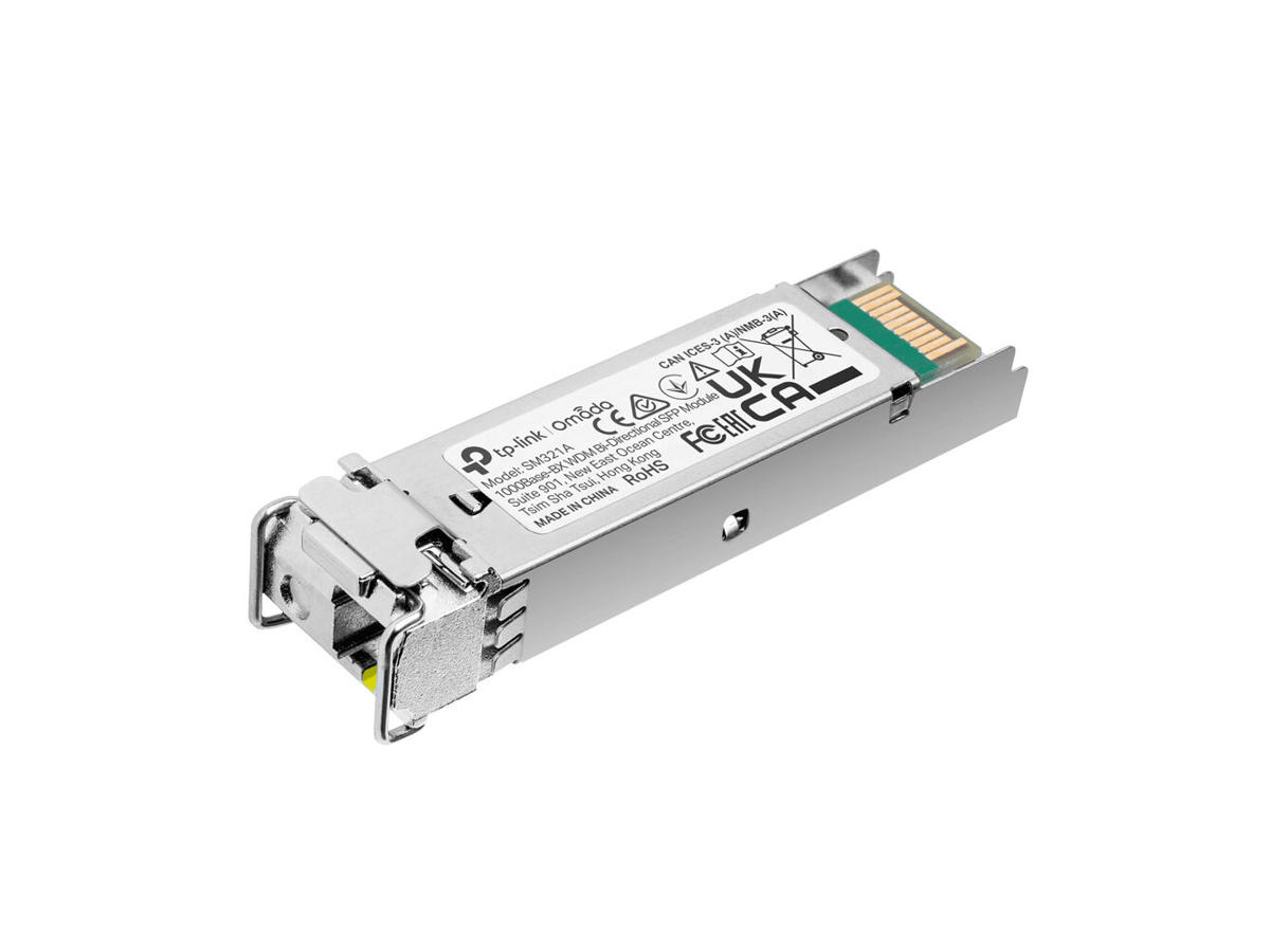 TP-Link Omada SM321A. SFP modtagertype: Fiberoptisk, Maksimal dataoverførselshastighed: 1250 Mbit/s, Grænsefladetype: SFP. Produktfarve: Sølv. Indgangsspænding: 3.3 V. Certificering: FCC, CE. Bredde: 55,4 mm, Dybde: 14,6 mm, Højde: 12,9 mm