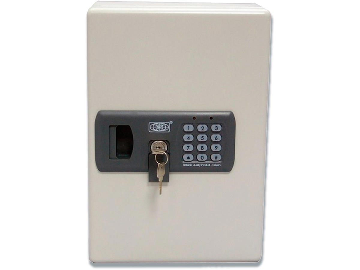 Nøgleskab med digital numerisk lås og LED indikator. Justerbare kroge. Fremstillet i stål. Inkl. 2 hovednøgler og 6 nøgleringe i ass. farver. Bruger AA batteri (medfølger ikke)