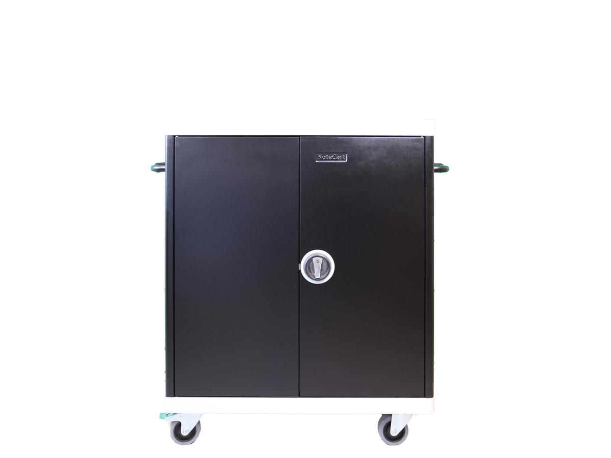NoteCart UniFit is a mobile cabinet for storing and charging laptops, Chromebooks and similar devices on 12 sliding shelves.
