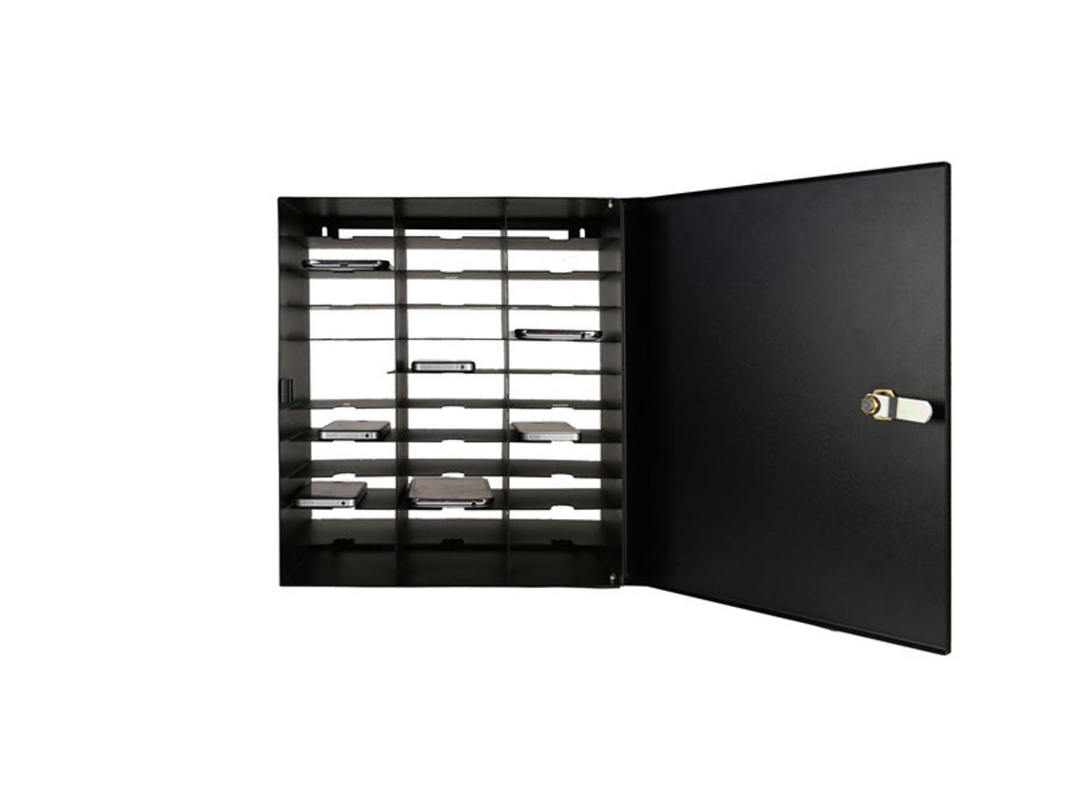 NoteBox Mobile is an ideal solution to securely store all students’ mobile phones. The sturdy and compact NoteBox Mobile is designed to hold 32 mobile phones. NoteBox Mobile is fitted with a key lock, so the teacher can easily and quickly lock all mobile phones inside. NoteBox Mobile can be hung on the wall by the changing room, in the gym, classroom or some other convenient place. NoteBox Mobile was developed at the request of several European municipalities and designed to store up to 32 mobile phones. The main objective of the development has been to develop a storage solution that supports and integrates students’ daily use of mobile phones in modern education