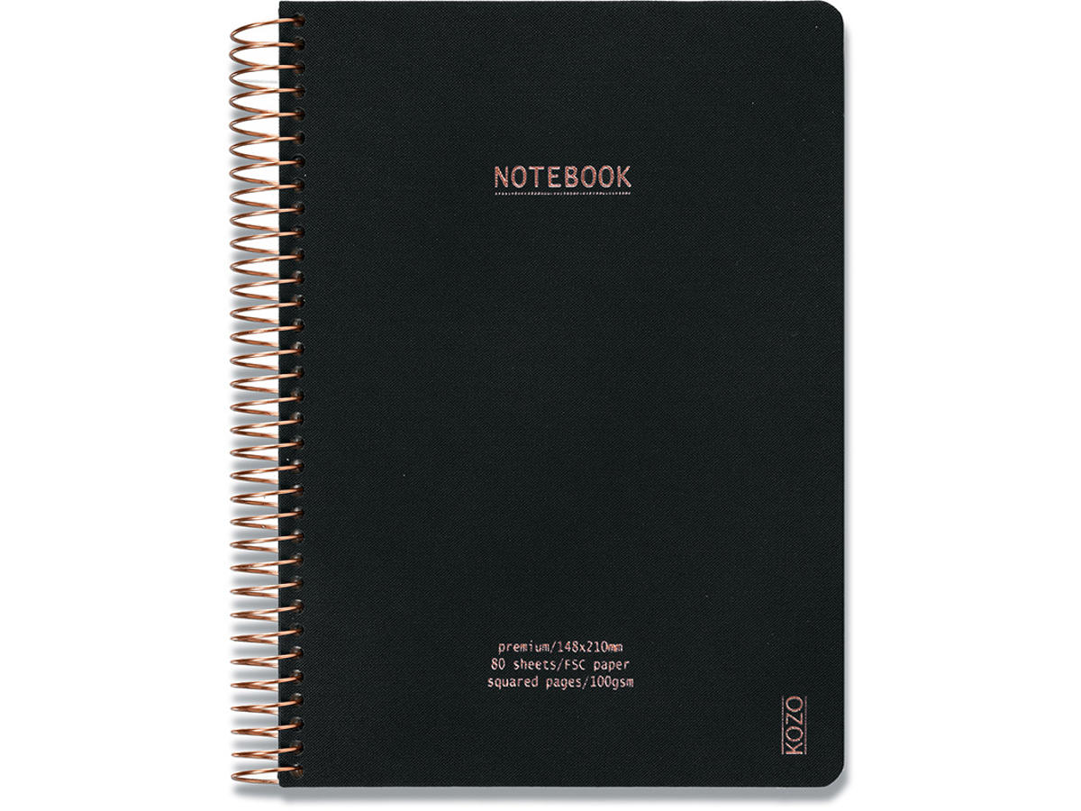 KOZO Premium Checked Notebook er absolut en af de flotteste notebooks på markedet. Med sit hårde omslag, dækket af højkvalitets 100% bomuldslærred, er den perfekt at skrive i, selv når du har den liggende på skødet eller stående. Alle 160 sider (80 ark) er beklædt med 0,5 cm firkanter og har tomme marginer til mindre noter. Derudover har hver side en særlig plads til dagens dato øverst. Det cremefarvede 100gsm papir giver en luksuriøs følelse og forhindrer blæk i at trænge igennem til næste side. Med smukke detaljer i bronze bliver notesbogen også en oplagt dekorationsdetalje på dit skrivebord. Match med andre KOZO-produkter i samme farve for et stilfuldt look.