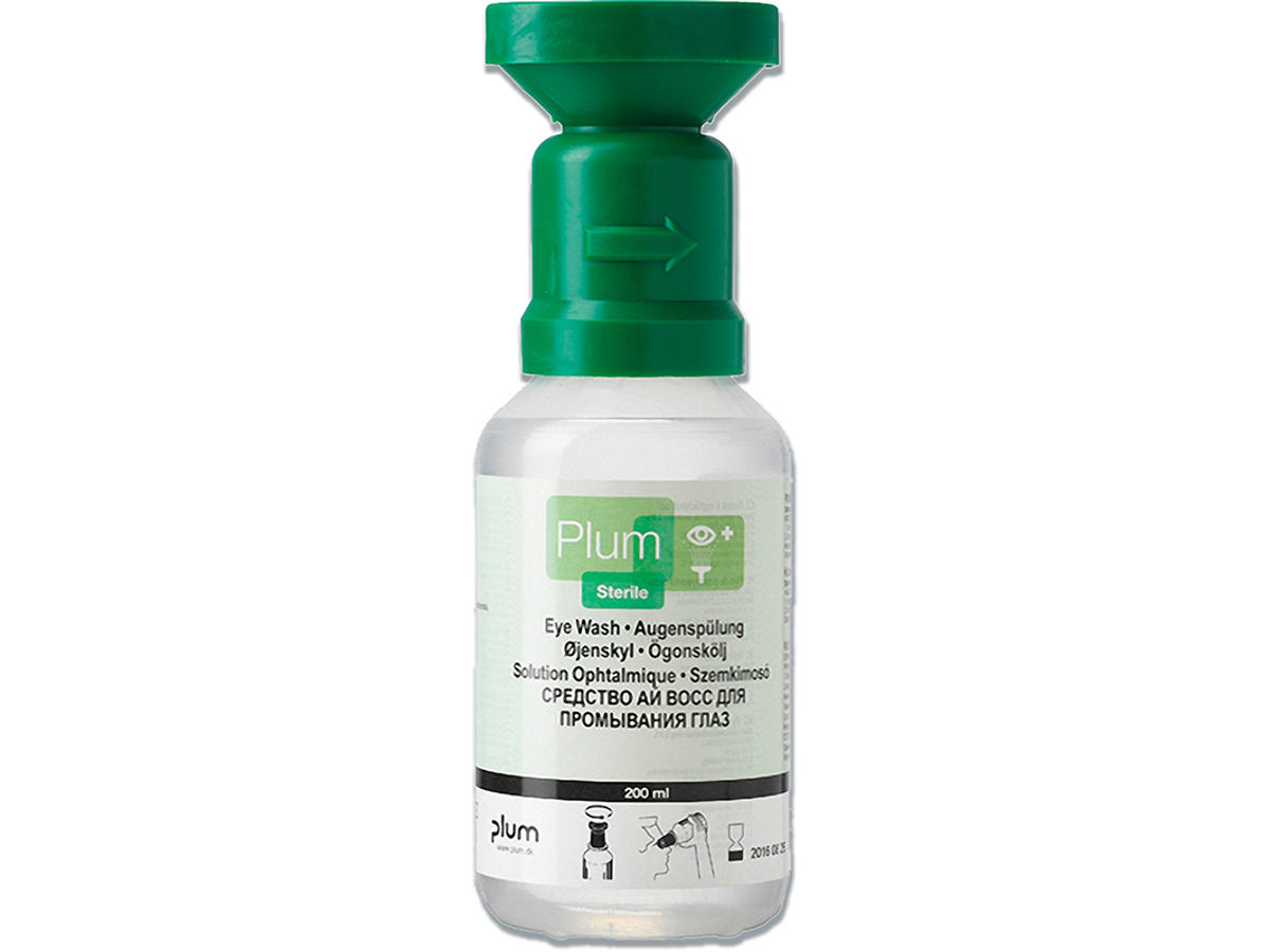 Anvendes til skylning af øjne forurenet med fremmedlegemer (støv, snavs mm.) En lille handy flaske med 0,9% steril natriumklorid. Flasken er let at have med sig, i handskerummet, værktøjskassen eller rengøringsvognen. Den er udstyret med en ergonomisk øjenkop, støvhætte og en udførlig brugervejledning på etiketten. Skylletid: 2 min.