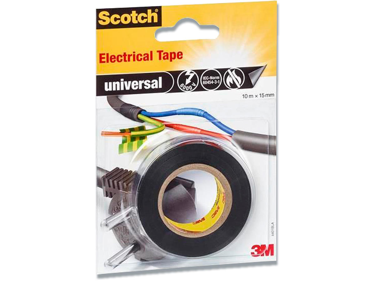 Scotch elektriker tape. Plasttape af god kvalitet som egner sig godt til isolering af strømførende ledninger og farvemarkeringer på ledninger, redskaber, legetøj o. lign. Lavet i et brandhæmmende materiale. Format 15mm x 10m
