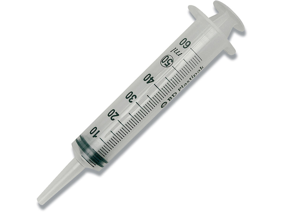 Sprøjte, BD Plastipak, 50/60 ml, Transparent, Med kateterspids, Centreret, 3 komponent, Steril, Engangs, 60 stk, Abena