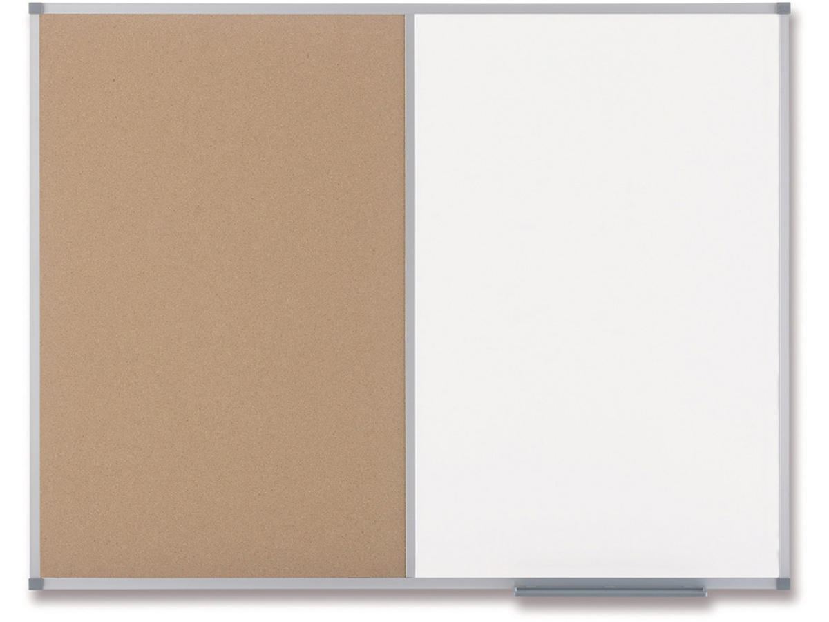 Klassisk kombinations-opslagstavle i kork/malet stål, omkranset af en højkvalitets, anodiseret aluminiumsramme og selvhelende korkoverflade til at sætte og vise dine beskeder på. Hjørne montering med monteringssæt inkluderet. Størrelse: 1200x900mm