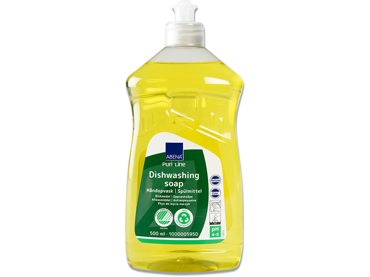 Effektiv håndopvask fra ABENAs Puri-Line serie er det oplagte valg til manuel opvask af både glas, bestik, tallerkener, gryder og lignende. Opvaskemidlet kan også med fordel anvendes til lettere, daglige rengøringsopgaver samt forbehandling af fedtpletter på tøj og andet tekstil inden maskinvask. Dosér produktet efter doseringsinstruktionerne. Anvendes i håndvarmt vand afhængig af besmudsningsgrad. Iblødsæt genstande der skal rengøres og vask med børste eller skuresvamp. Skyl grundigt og lad det lufttørre eller aftør med viskestykke. 0,4-1 ml/l. Det anbefales at anvende pumpe eller doseringsbæger for nøjagtig dosering.