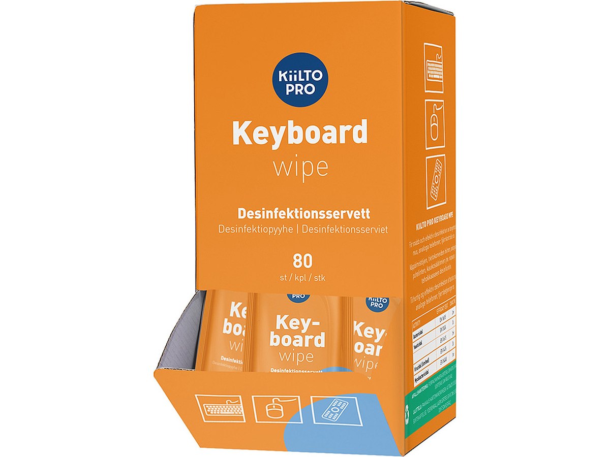 Overfladedesinfektion, Til keyboard, Servietter, 80 stk, Enkeltindpakket, Kiilto Pro