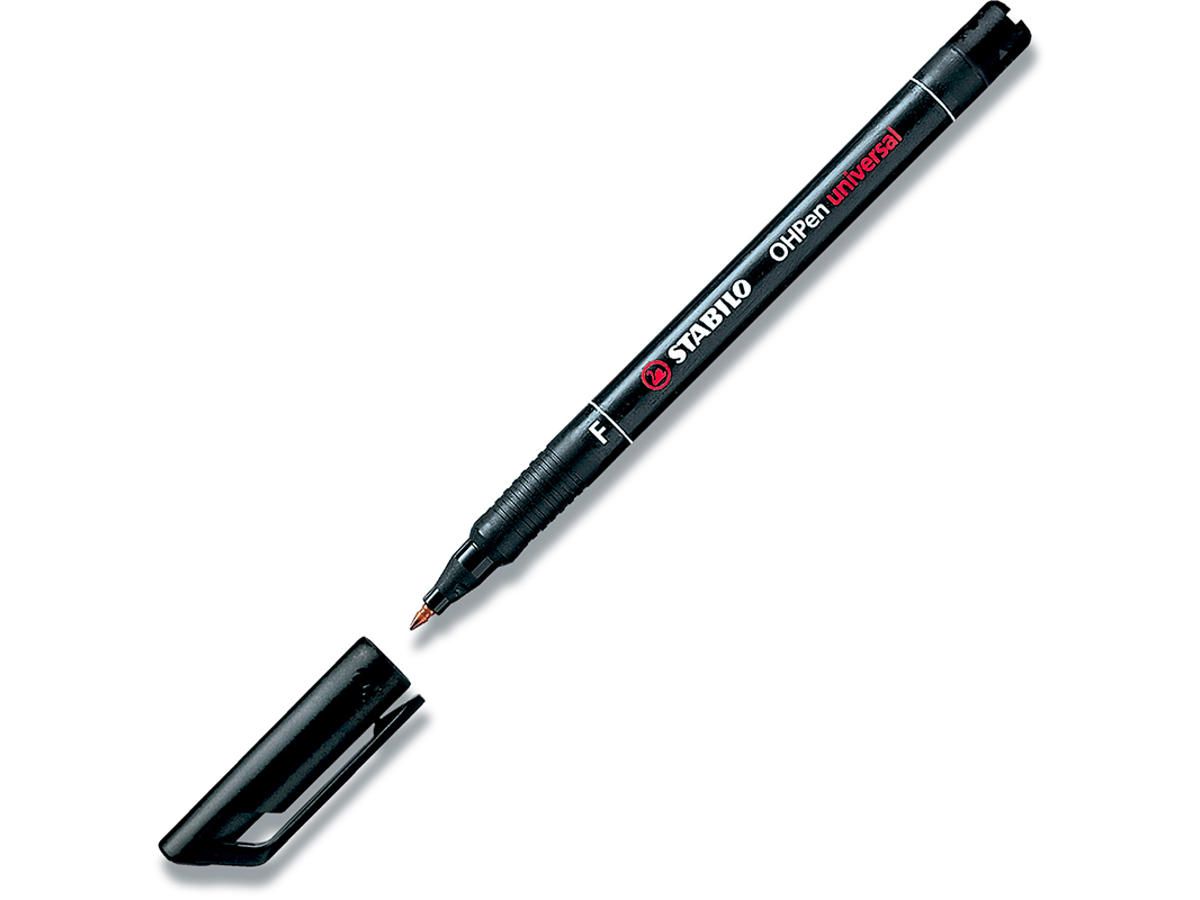 STABILO 842 OHPen. Permanent OHPen som skriver på næsten alle flader. Kan ligge uden hætte op til 3 dage. Ergonomisk grebzone og praktisk clip. Stregbredde: 0,7 mm.
