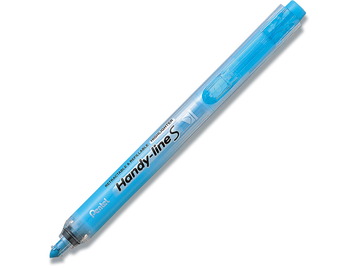 Handy-line fra Pentel er en slank lugtfri highlighter, der er nem at have med. Den har lomme-sikker clip, der fungerer som automatisk trykmekanisme, når den er klipset på. Avanceret lukke-teknologi forhindrer blækket i at tørre ud. Spidsen kan lave både tykke og tynde streger. Som en del af Pentels Recycology serie er highlighteren fremstillet af 54% genanvendt plastik. Fås i seks friske farver: Blå, grøn, violet, orange, gul og pink.