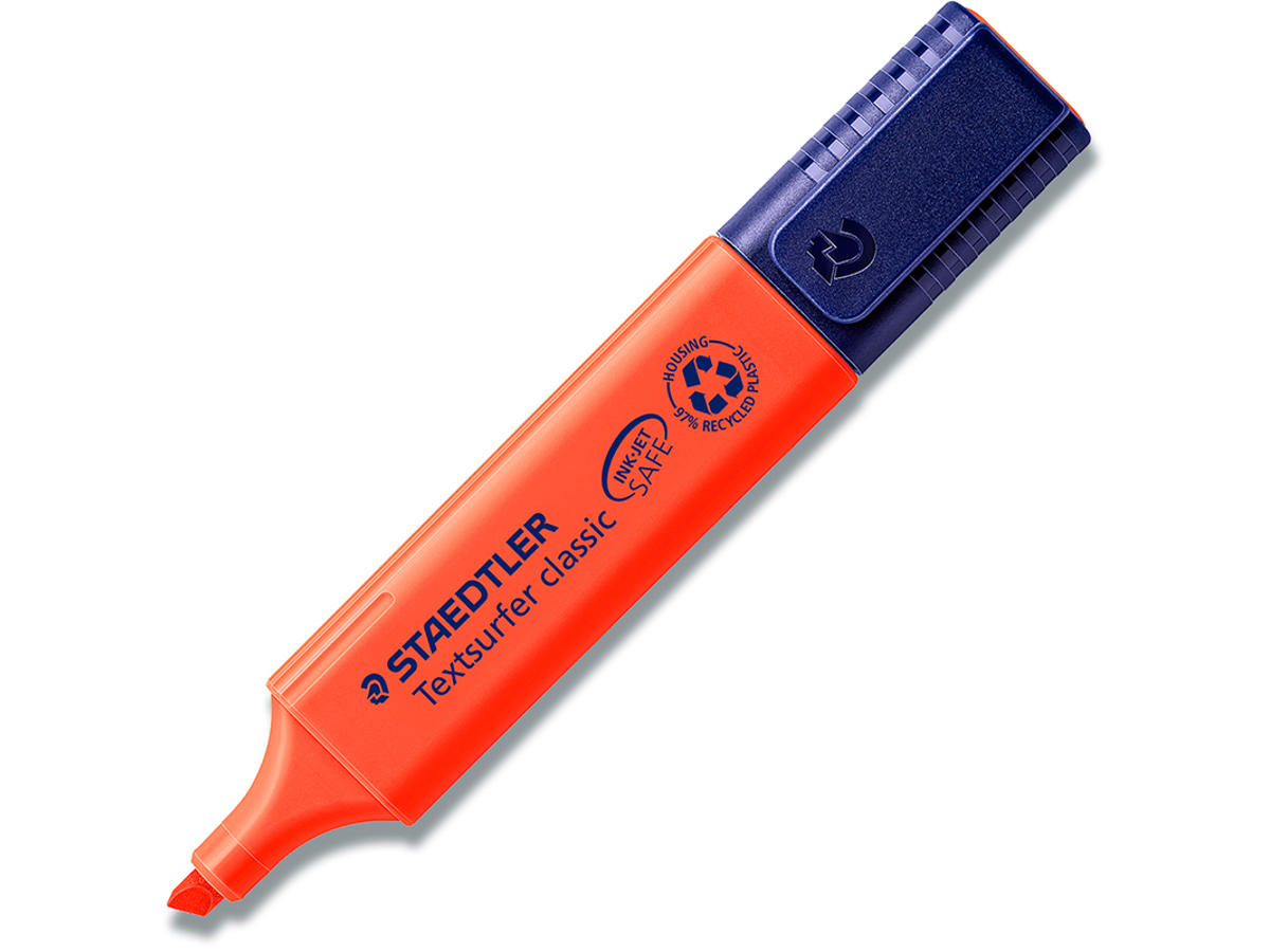 OVERSTREGNINGSPEN TEXTSURFER CLASSIC i 97% genanvendt plast til overstregning på papir, fax, inkjet print og kopier. INKJET SAFE blæk sikrer, at man ikke udtværer inkjet udskrifter og håndskrevne tekster ved enkel overstregning. Hurtigtørrende. Twisthætte for nem åbning. Ultrablød bred spids ca. 1 - 5 mm.