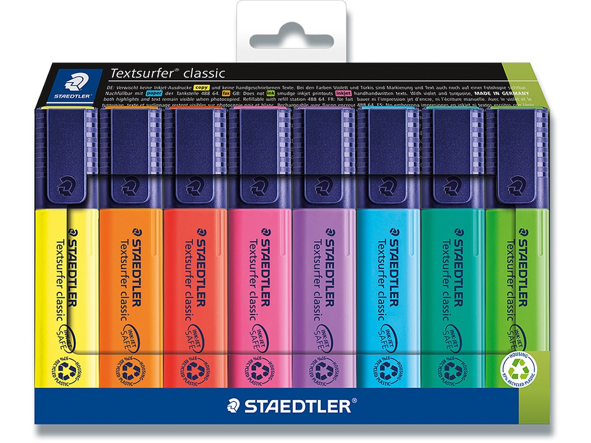 Tekstmarker, Permanent, Assorteret, 8 stk, Staedtler Textsurfer Classic 364
