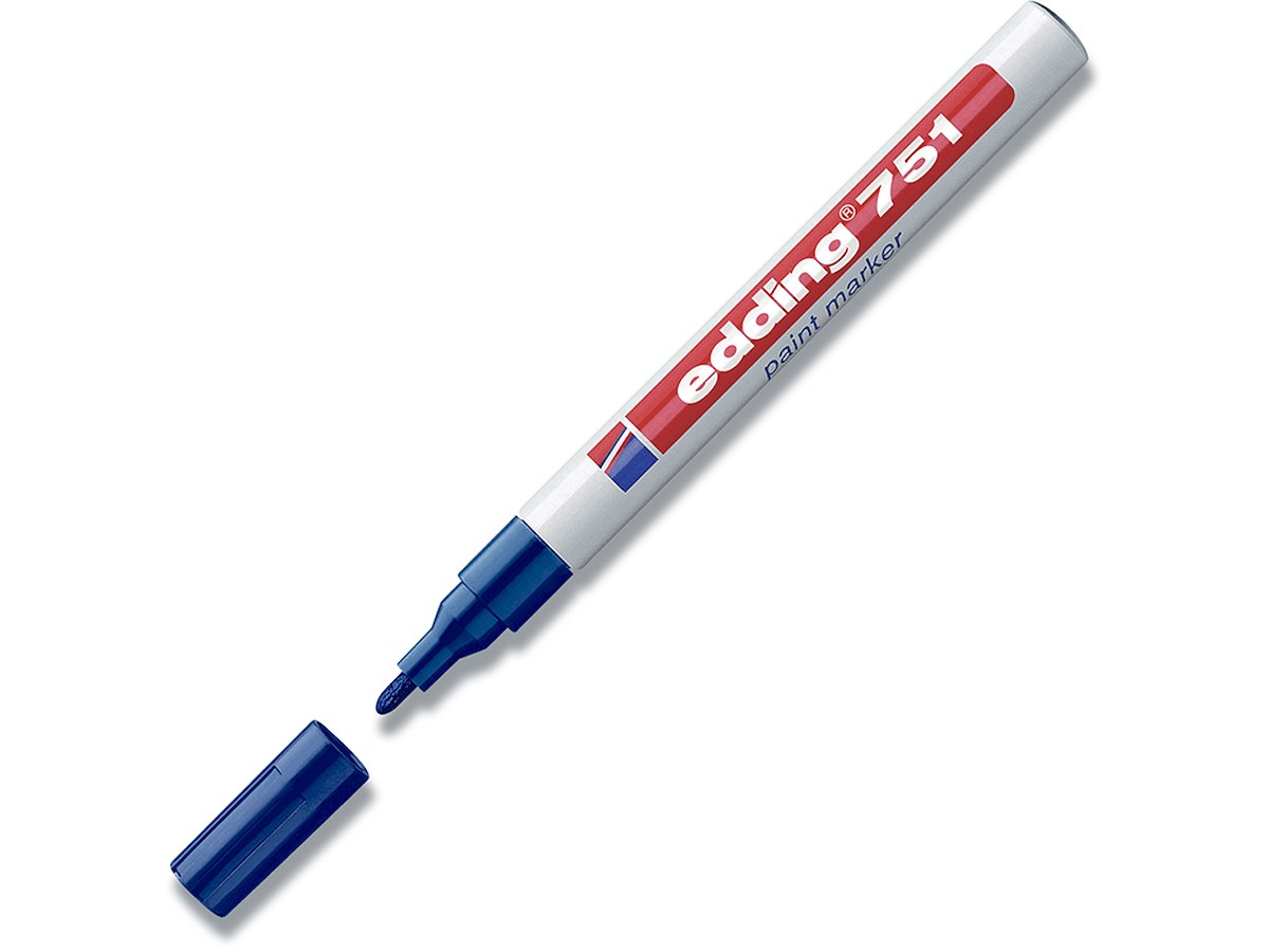 Edding 751 marker er specielt velegnet til glas, plastik, træ og metal. Denne pen har lysægte og hurtigtørrende blæk, som gør det muligt at skrive og male på de fleste overflader. Den har en rund spids, hvilket giver en skrivebredde på 1-2 mm. Blækbeholderen er fremstillet af aluminium og farven på pennen indikerer skrivefarven. Paint markeren findes i hvid, sort, blå, grøn, rød, gul, guld, sølv og kobber. Alle farver er varmebestandige til 300° C, dog er farverne gul, hvid og sølv stadig synlige ved 1000° C.