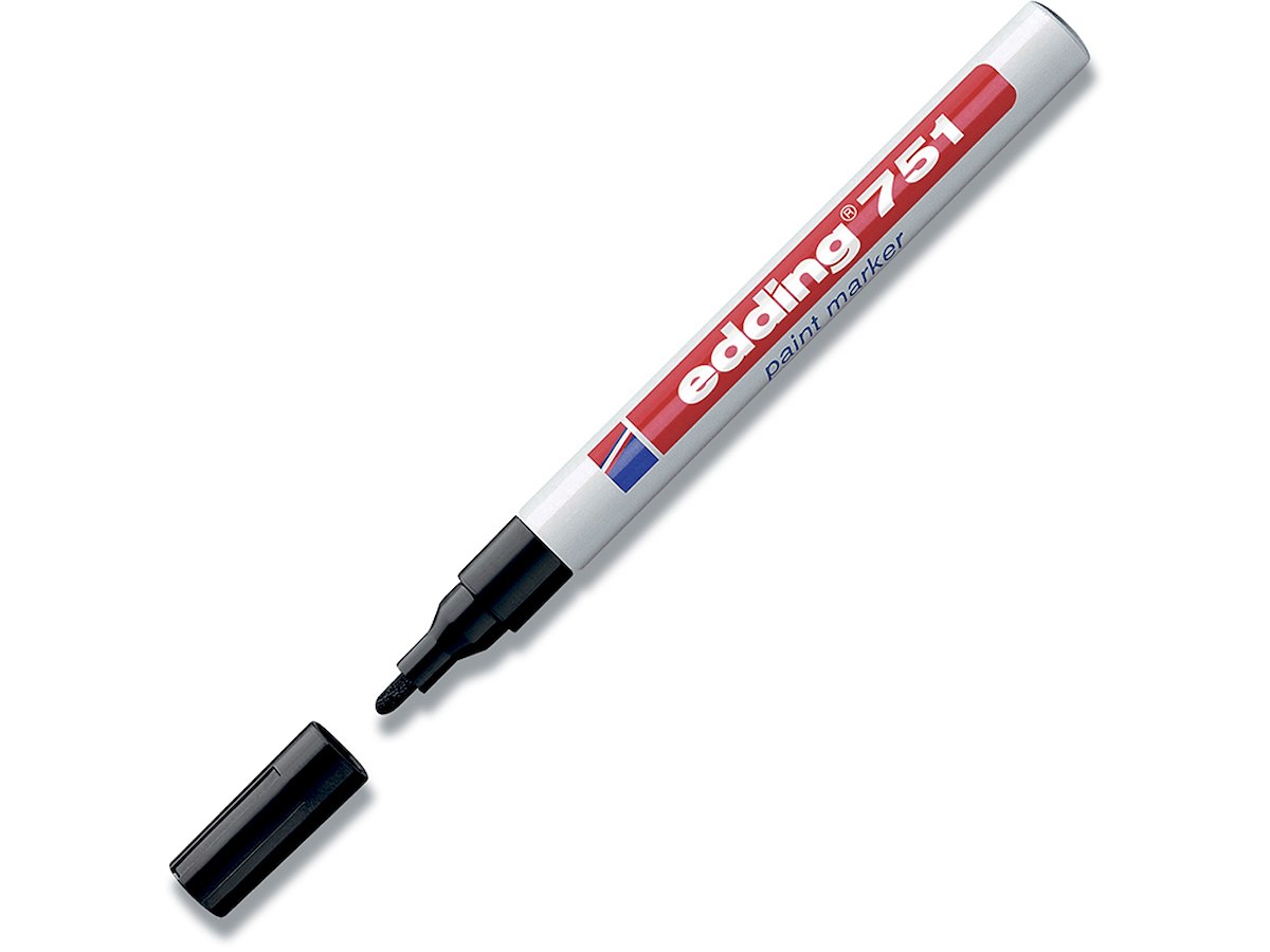 Edding 751 marker er specielt velegnet til glas, plastik, træ og metal. Denne pen har lysægte og hurtigtørrende blæk, som gør det muligt at skrive og male på de fleste overflader. Den har en rund spids, hvilket giver en skrivebredde på 1-2 mm. Blækbeholderen er fremstillet af aluminium og farven på pennen indikerer skrivefarven. Paint markeren findes i hvid, sort, blå, grøn, rød, gul, guld, sølv og kobber. Alle farver er varmebestandige til 300° C, dog er farverne gul, hvid og sølv stadig synlige ved 1000° C.