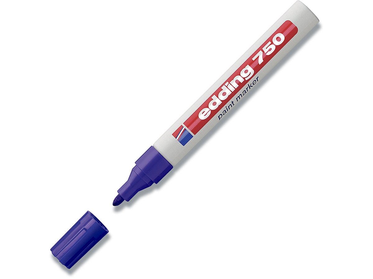 Edding 750 marker er specielt velegnet til glas, plastik, træ og metal. Denne pen har lysægte og hurtigtørrende blæk, som gør det muligt at skrive og male på de fleste overflader. Den har en rund spids, hvilket giver en skrivebredde på 2-4 mm. Blækbeholderen er fremstillet af aluminium og farven på plasthætten indikerer skrivefarven. Paint markeren findes i hvid, sort, blå, grøn, rød, gul, guld, sølv og kobber. Alle farver er varmebestandige til 300° C, dog er farverne gul, hvid og sølv stadig synlige ved 1000° C.