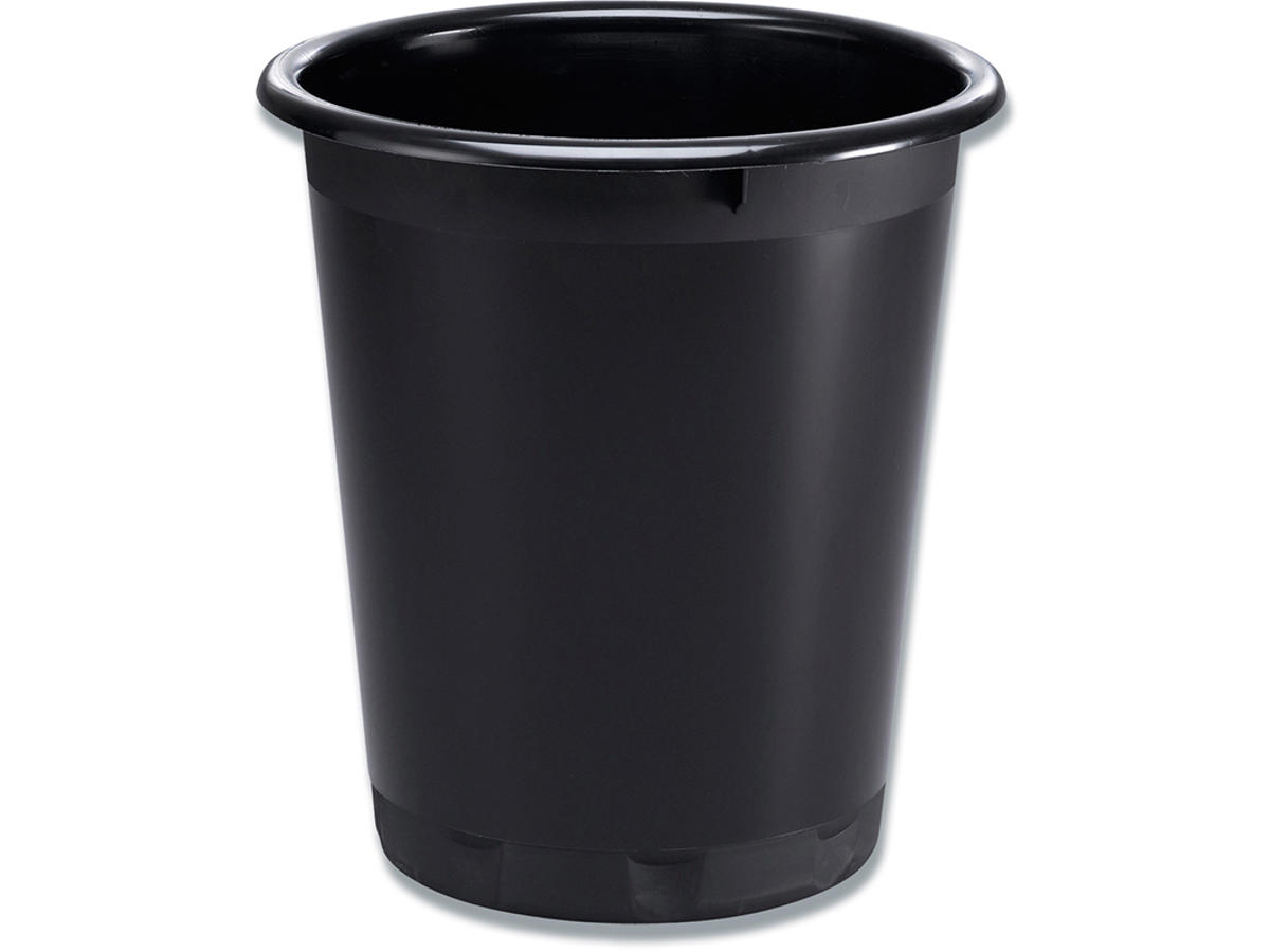 Rund papirkurv med greb kant. Indeholder 13 L. Mål: ø 290mm, højde 320mm. Delvist lavet af genbrugsplast.